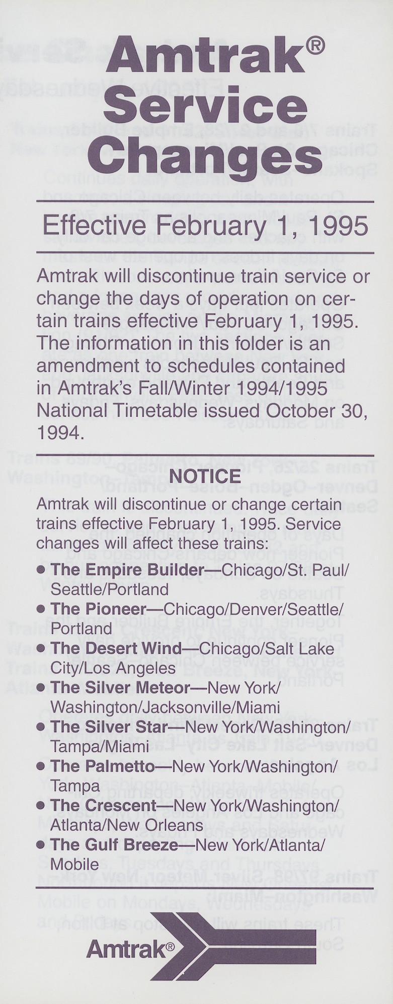 This timetable image is ©1995 National Railroad Passenger Corporation (Amtrak).