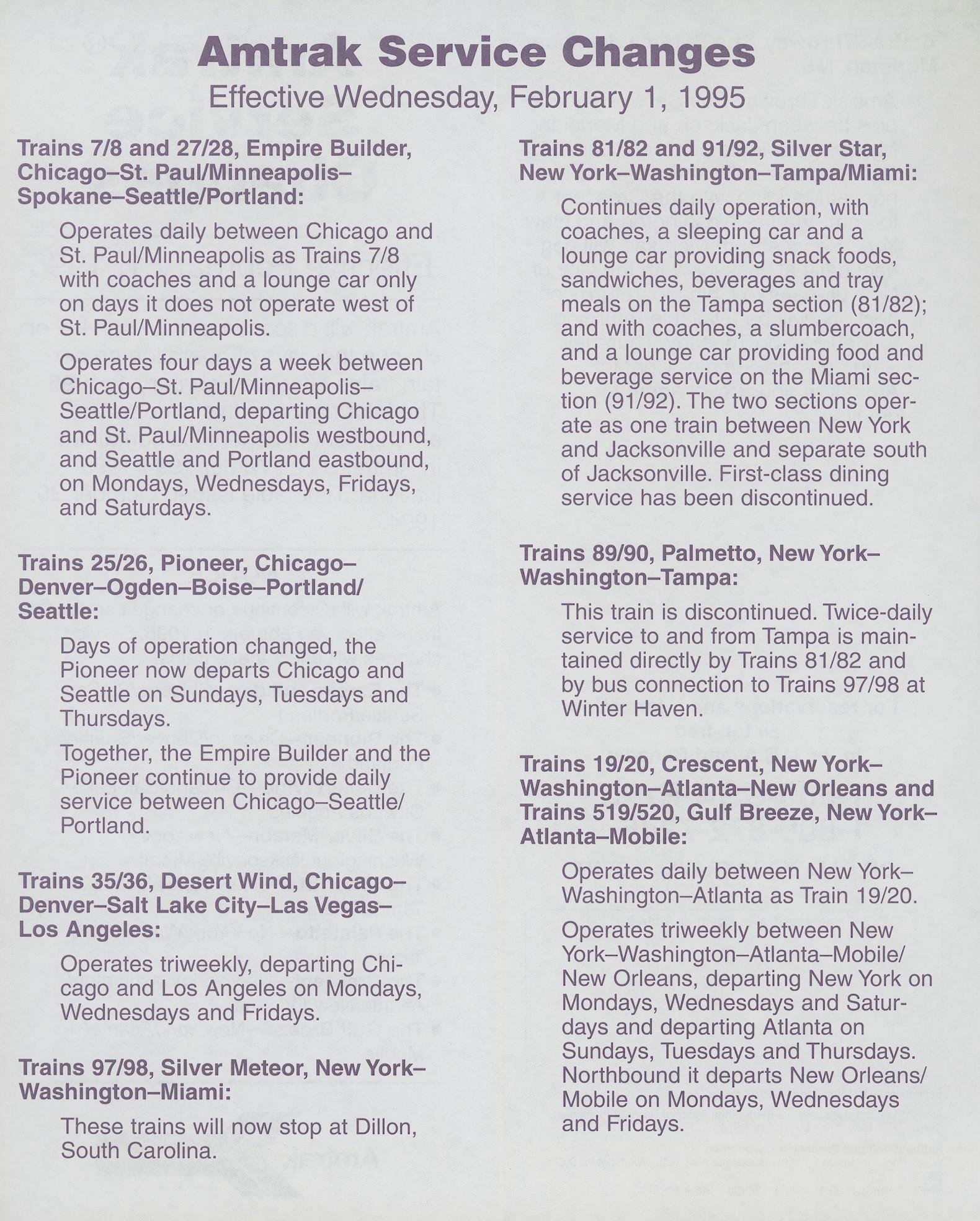 This timetable image is ©1995 National Railroad Passenger Corporation (Amtrak).