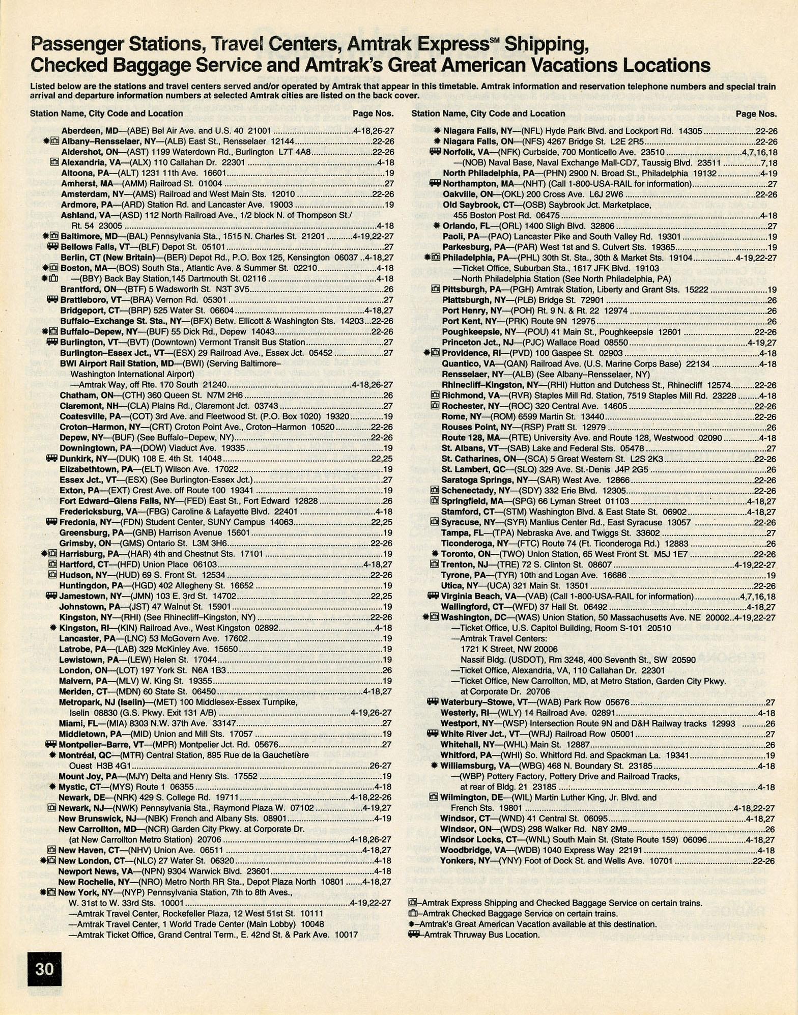 This timetable image is ©1995 National Railroad Passenger Corporation (Amtrak).