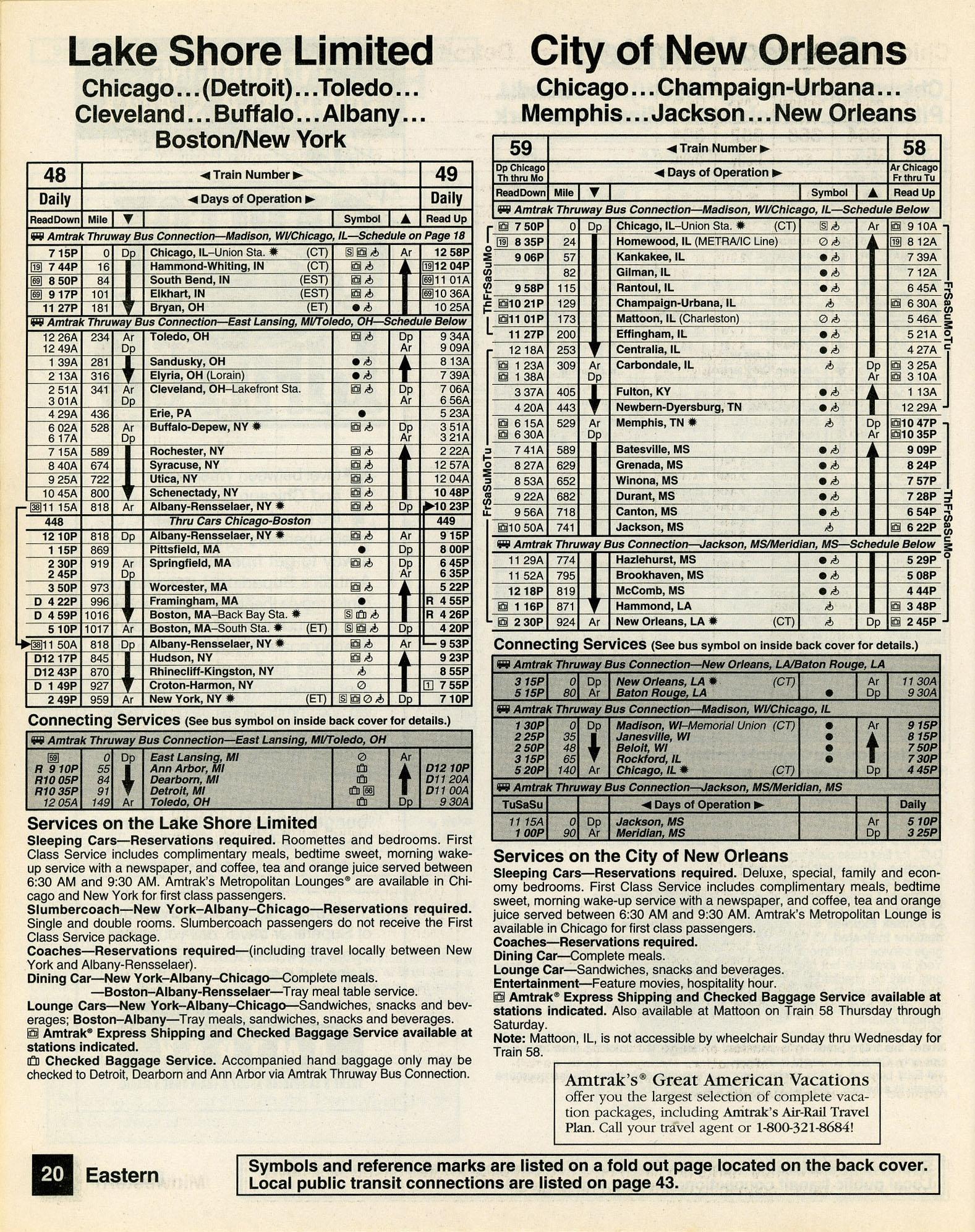 This timetable image is ©1995 National Railroad Passenger Corporation (Amtrak).