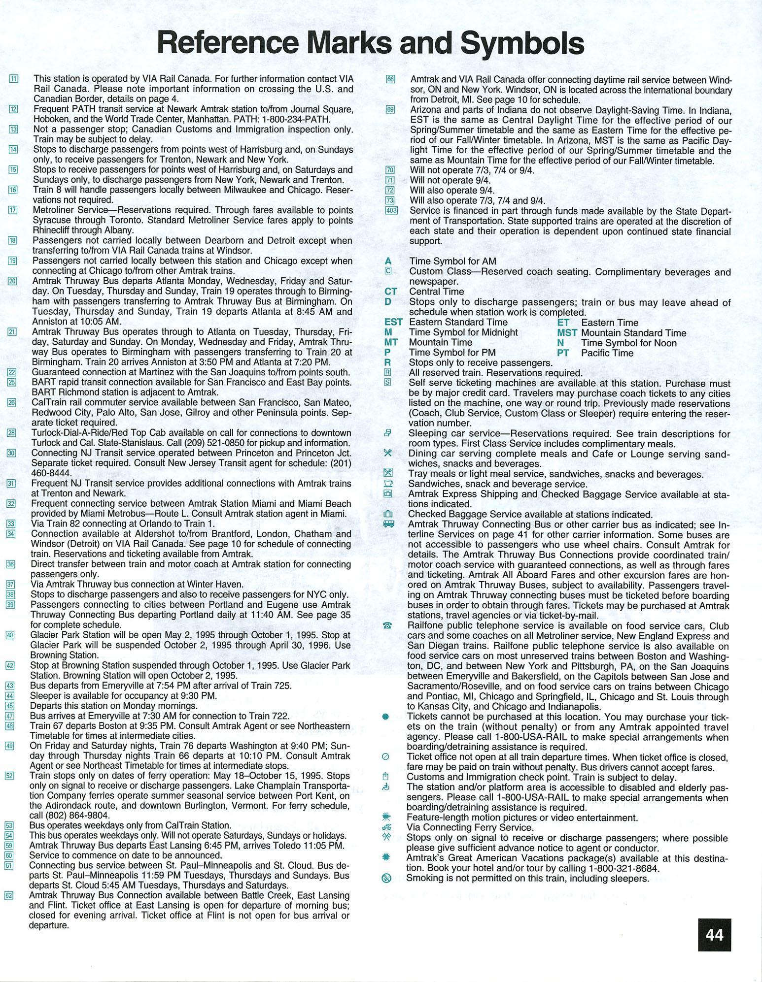 This timetable image is ©1995 National Railroad Passenger Corporation (Amtrak).