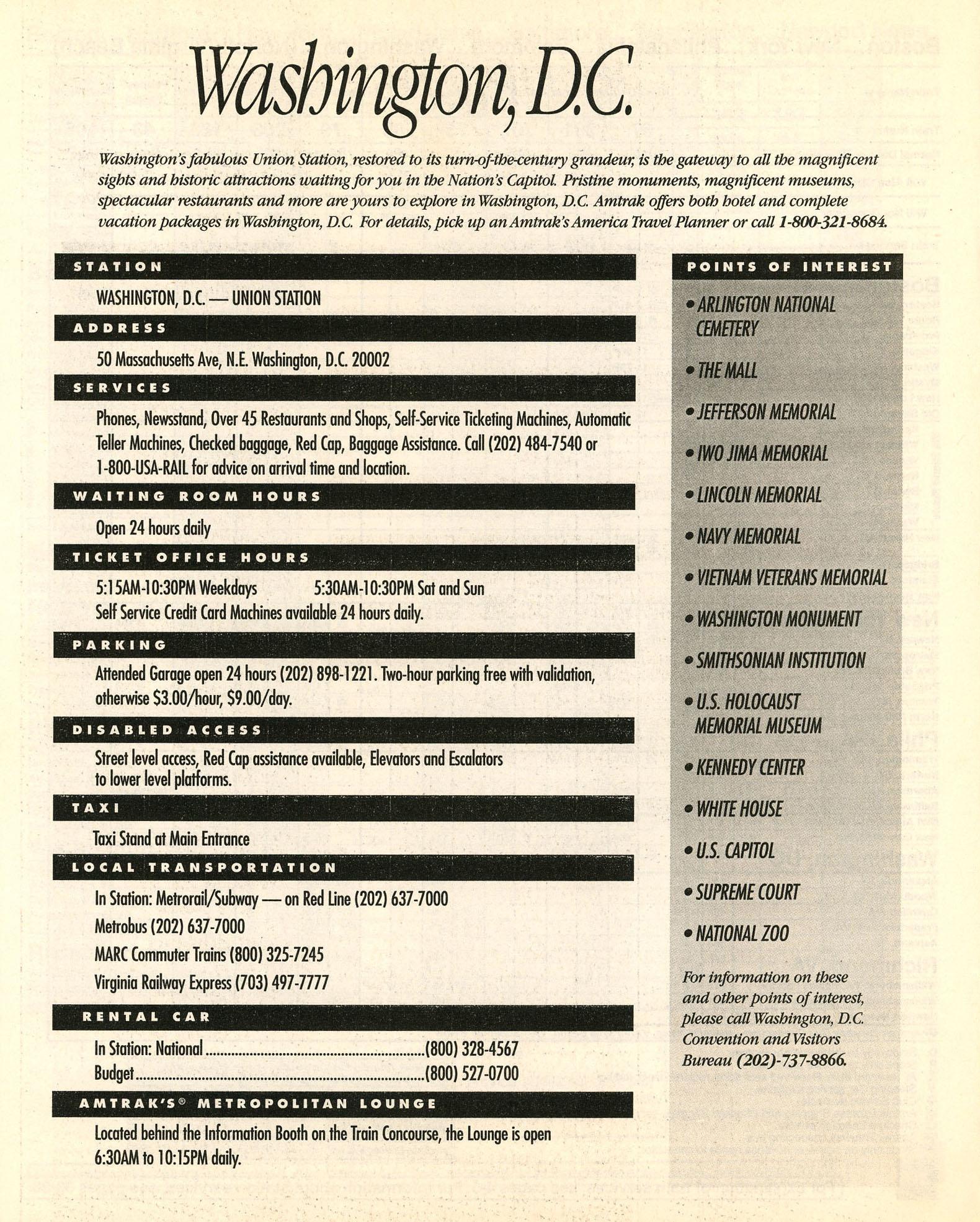 This timetable image is ©1995 National Railroad Passenger Corporation (Amtrak).