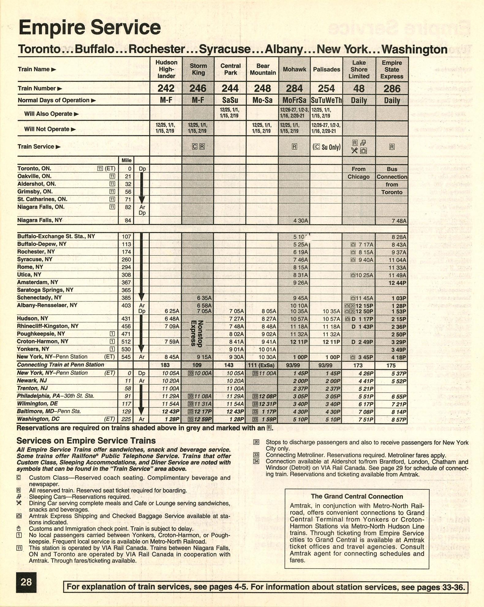 This timetable image is ©1995 National Railroad Passenger Corporation (Amtrak).