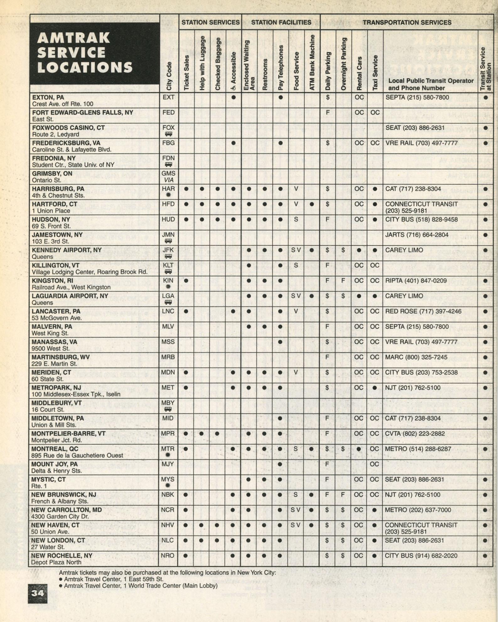 This timetable image is ©1995 National Railroad Passenger Corporation (Amtrak).