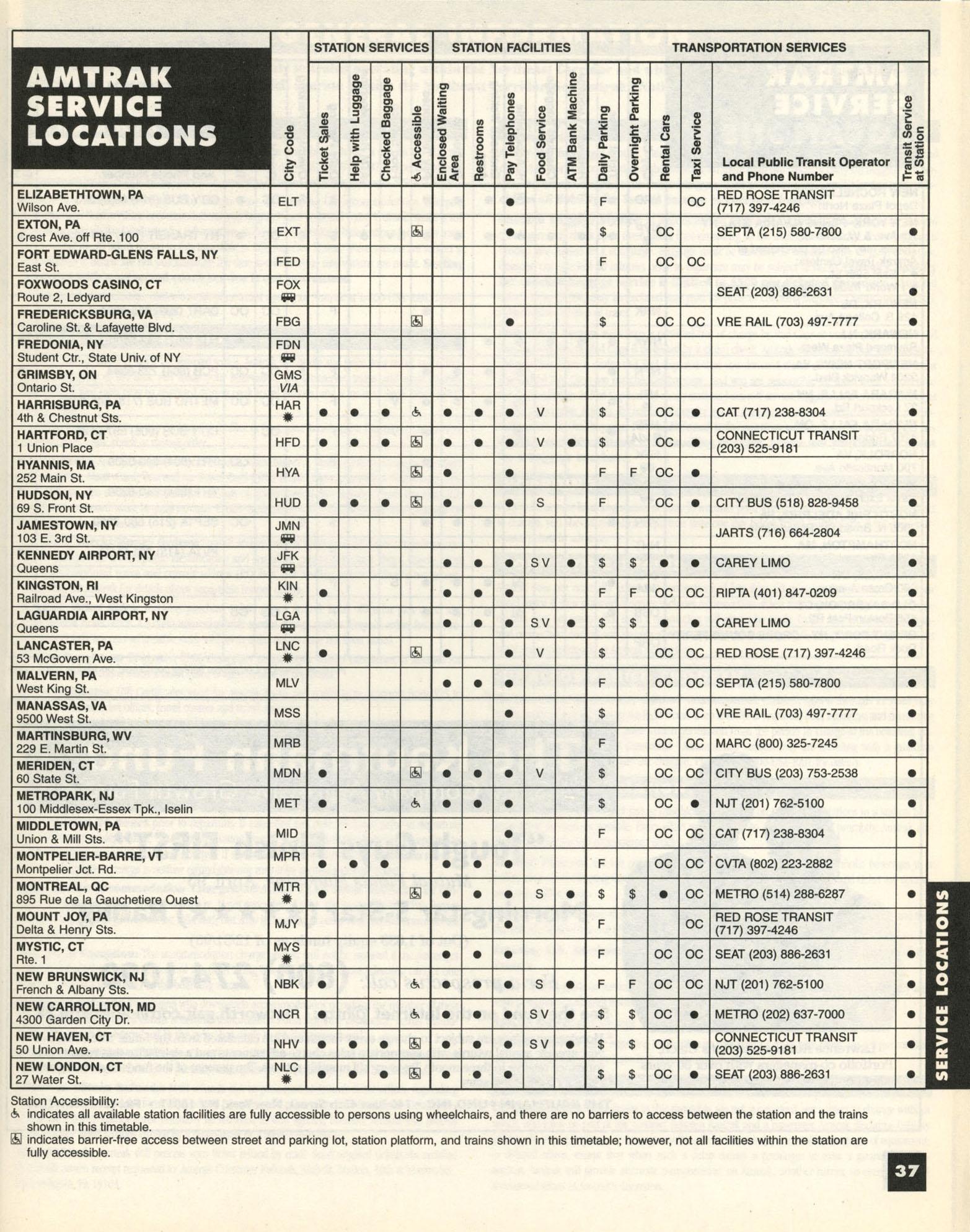 This timetable image is ©1996 National Railroad Passenger Corporation (Amtrak).