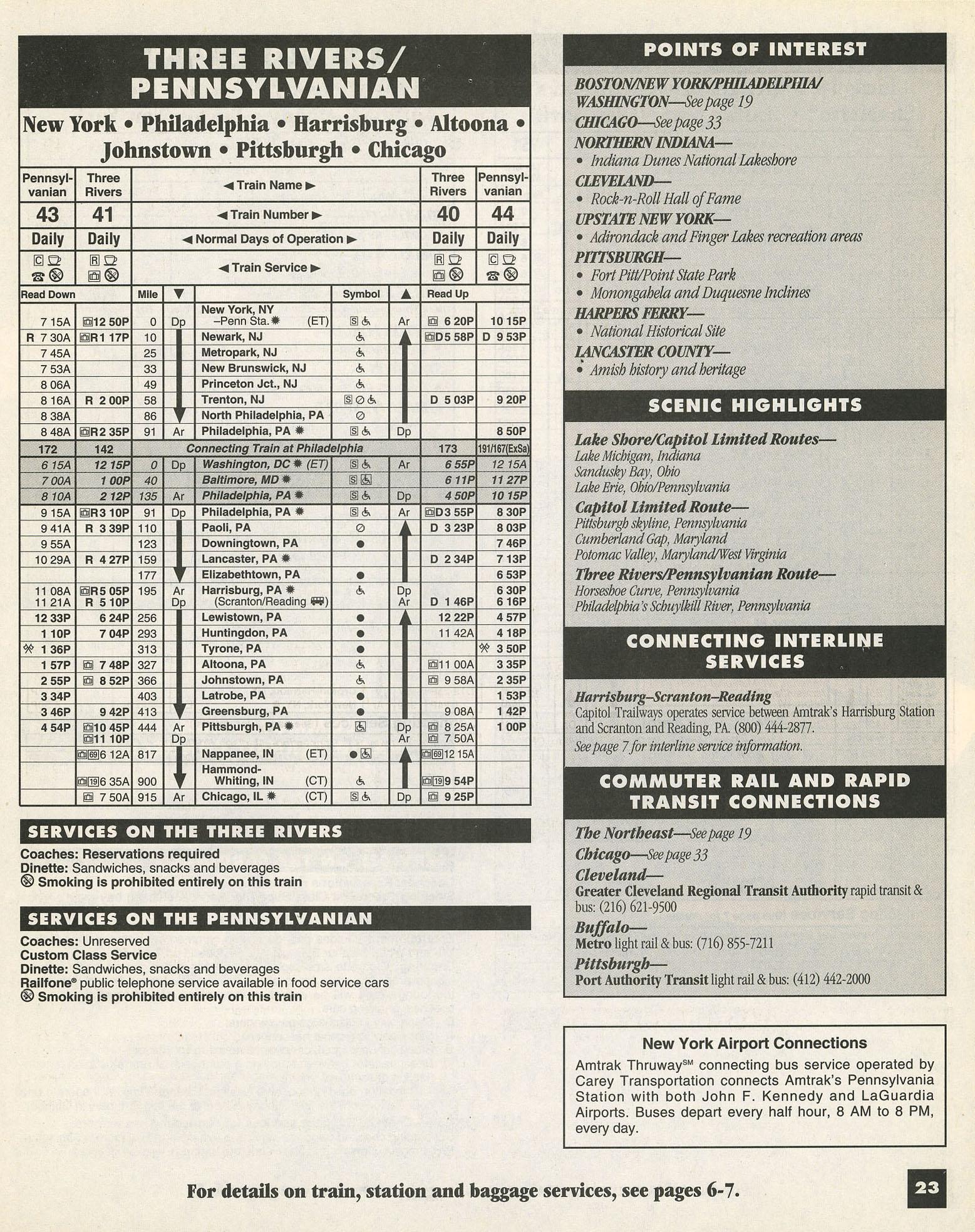 This timetable image is ©1996 National Railroad Passenger Corporation (Amtrak).