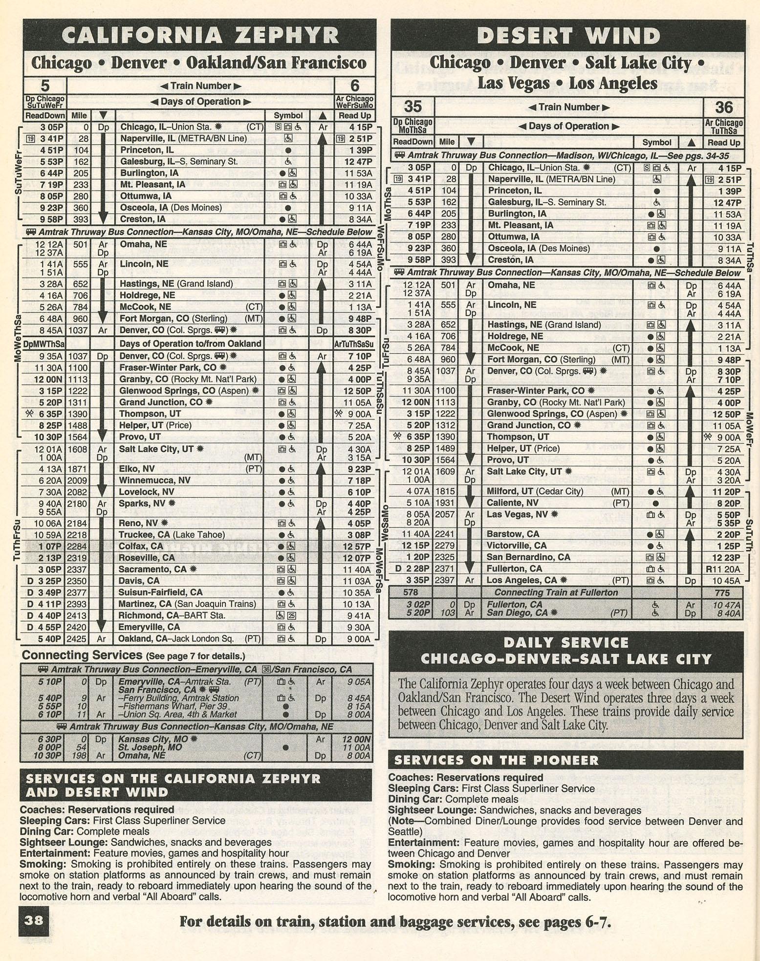 This timetable image is ©1996 National Railroad Passenger Corporation (Amtrak).