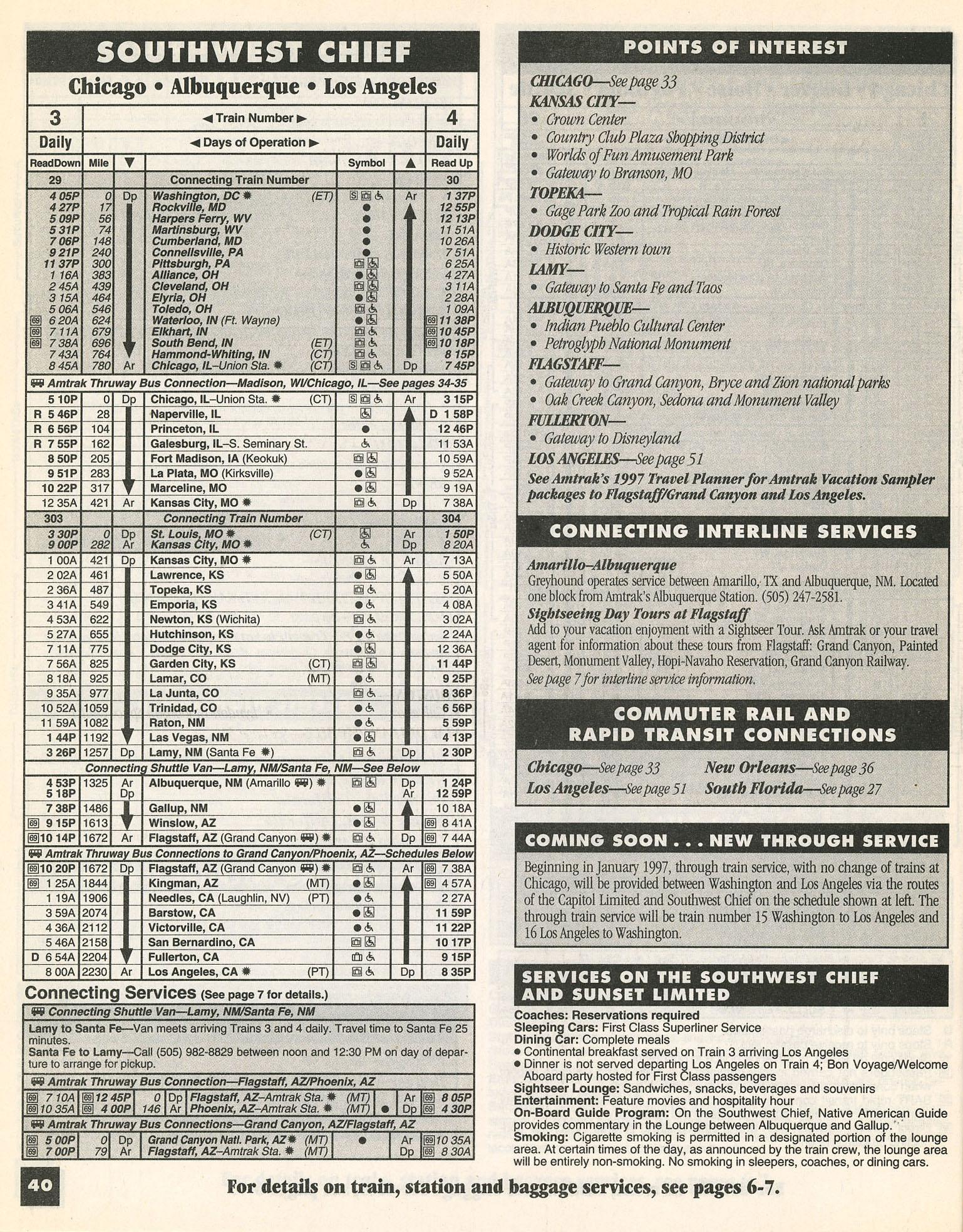 This timetable image is ©1996 National Railroad Passenger Corporation (Amtrak).