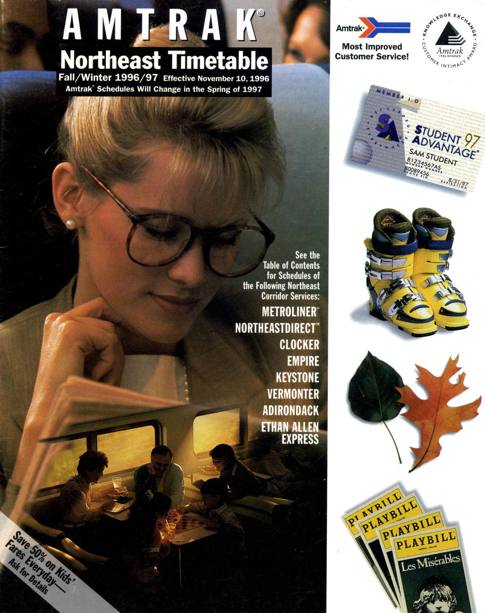 This timetable image is ©1996 National Railroad Passenger Corporation (Amtrak).