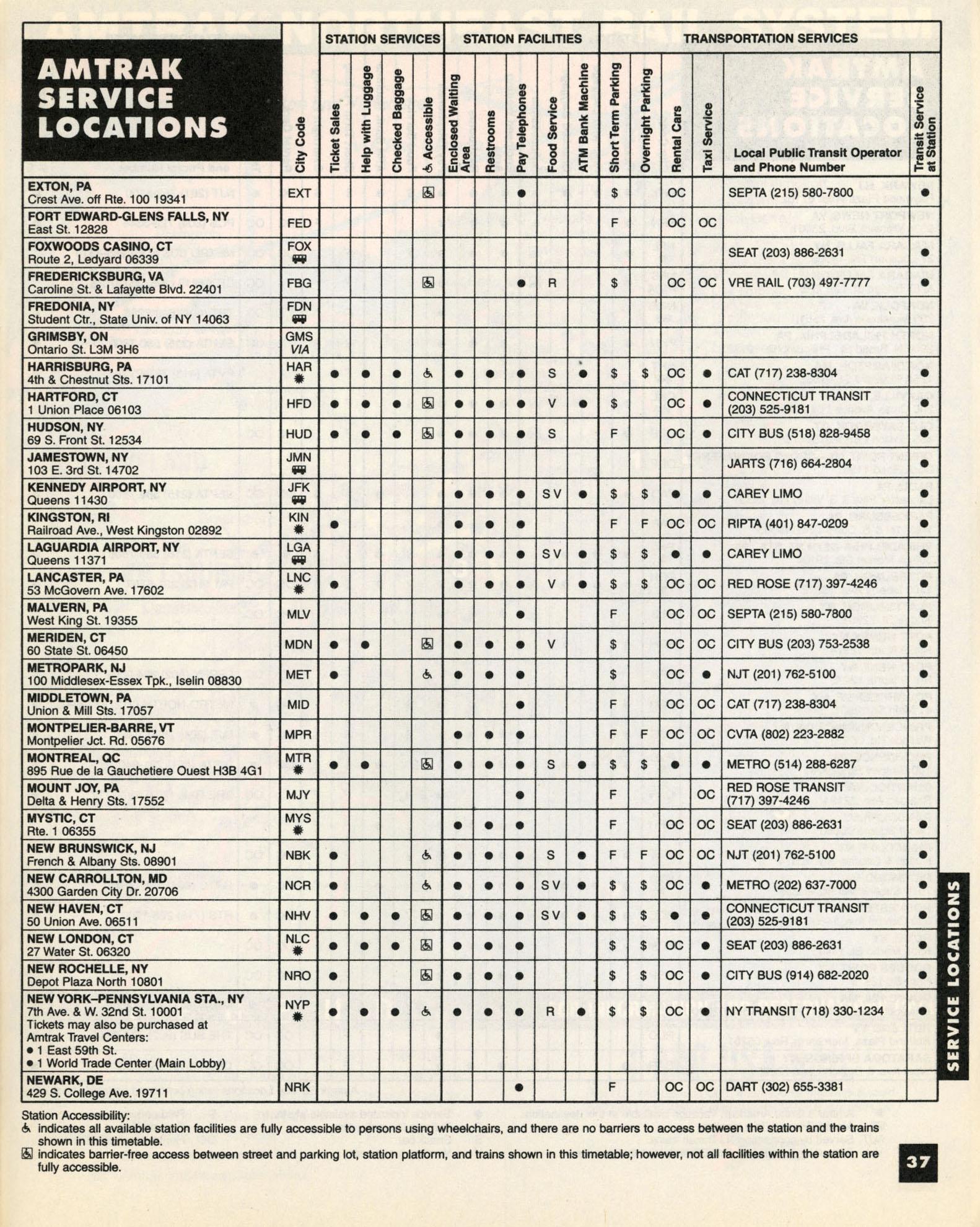 This timetable image is ©1996 National Railroad Passenger Corporation (Amtrak).