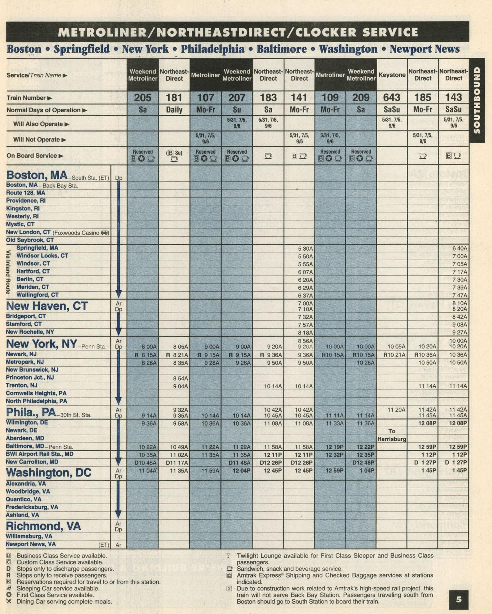 This timetable image is ©1999 National Railroad Passenger Corporation (Amtrak).