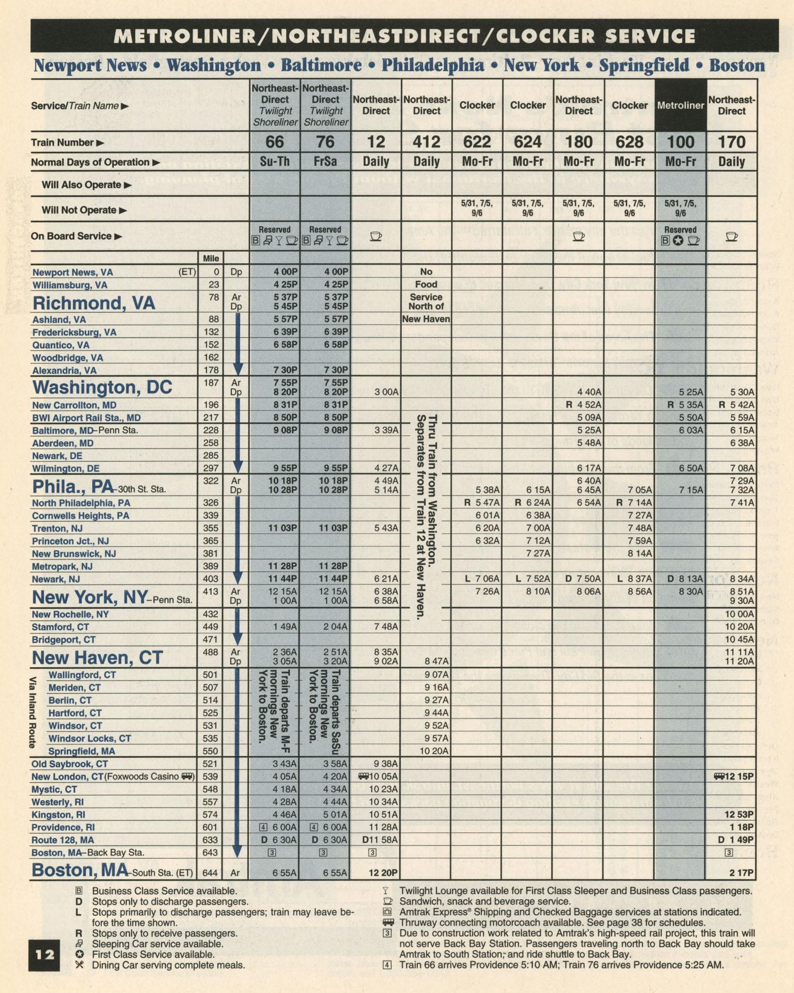 This timetable image is ©1999 National Railroad Passenger Corporation (Amtrak).