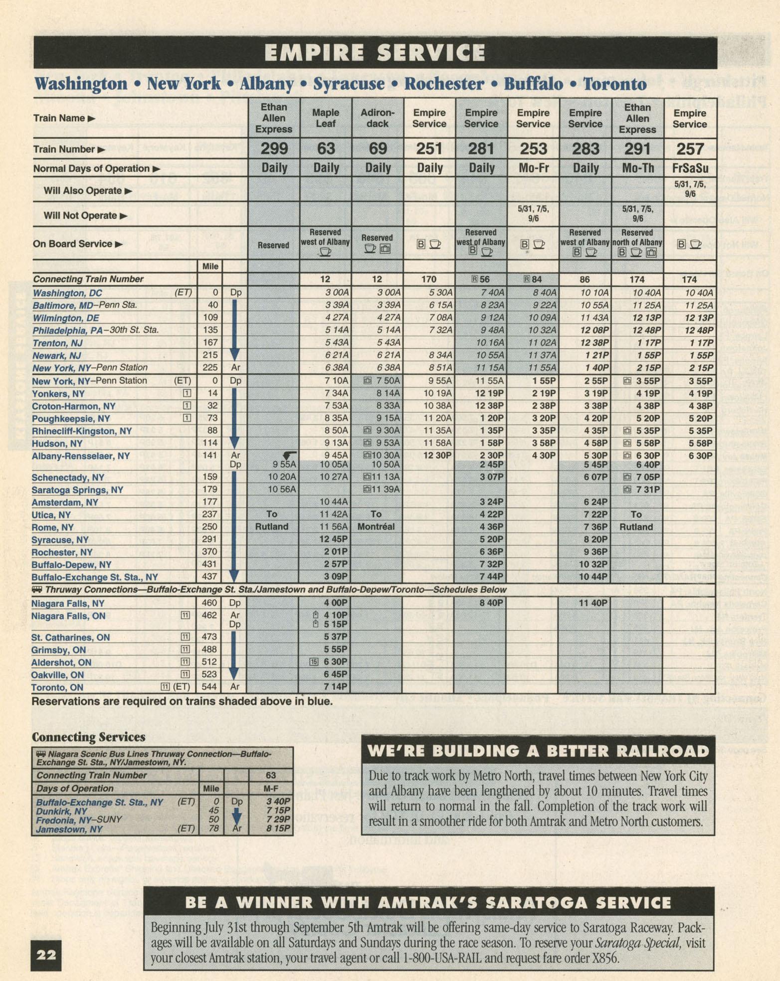 This timetable image is ©1999 National Railroad Passenger Corporation (Amtrak).