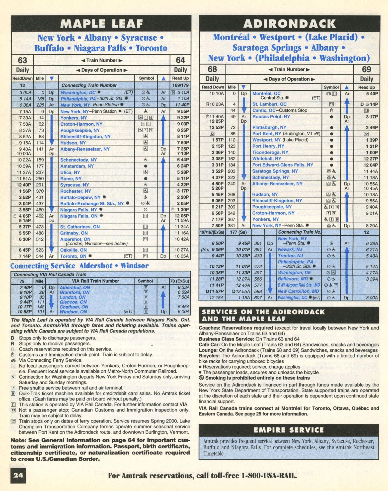 This timetable image is ©1999 National Railroad Passenger Corporation (Amtrak).