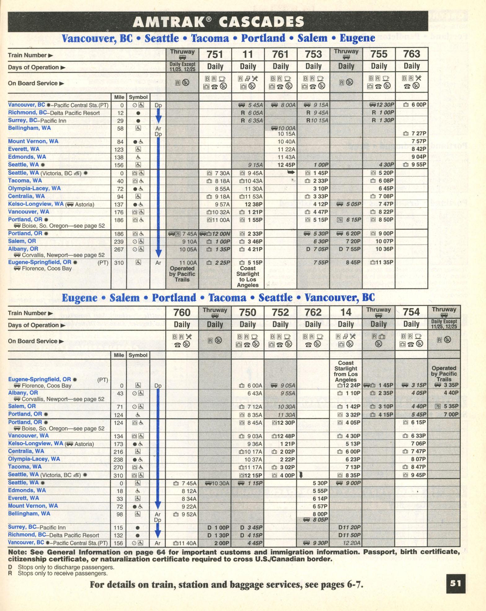 This timetable image is ©1999 National Railroad Passenger Corporation (Amtrak).