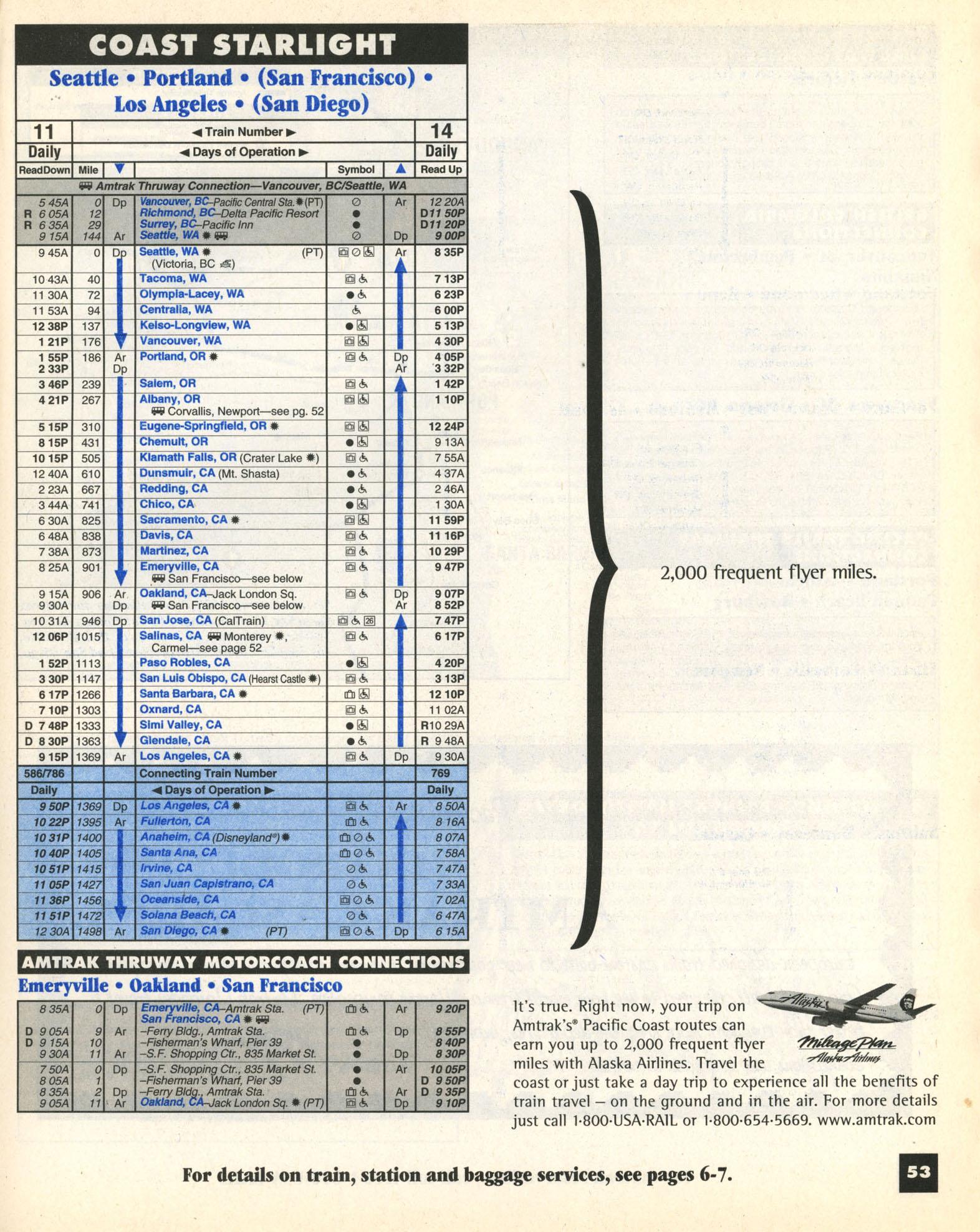 This timetable image is ©1999 National Railroad Passenger Corporation (Amtrak).