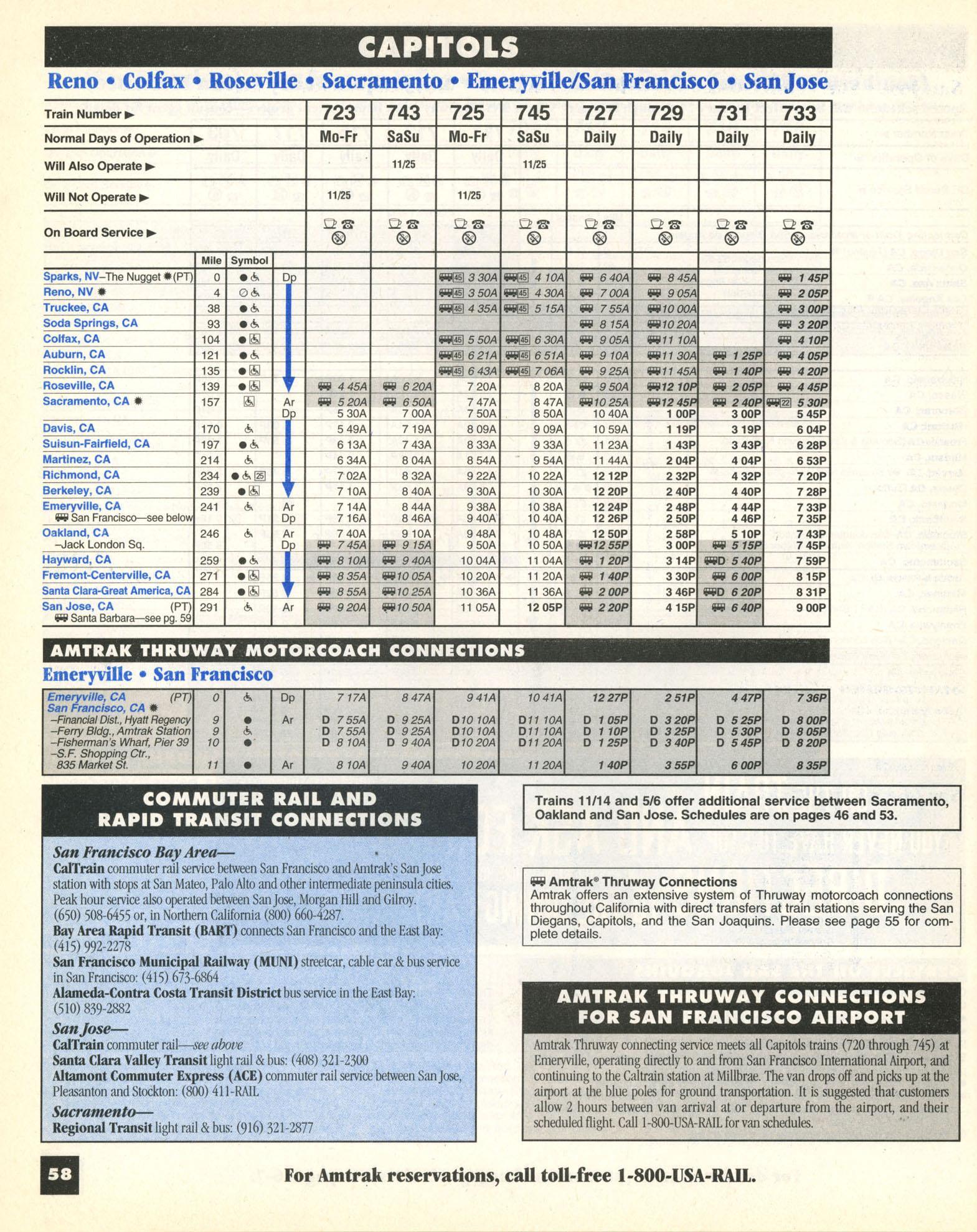 This timetable image is ©1999 National Railroad Passenger Corporation (Amtrak).