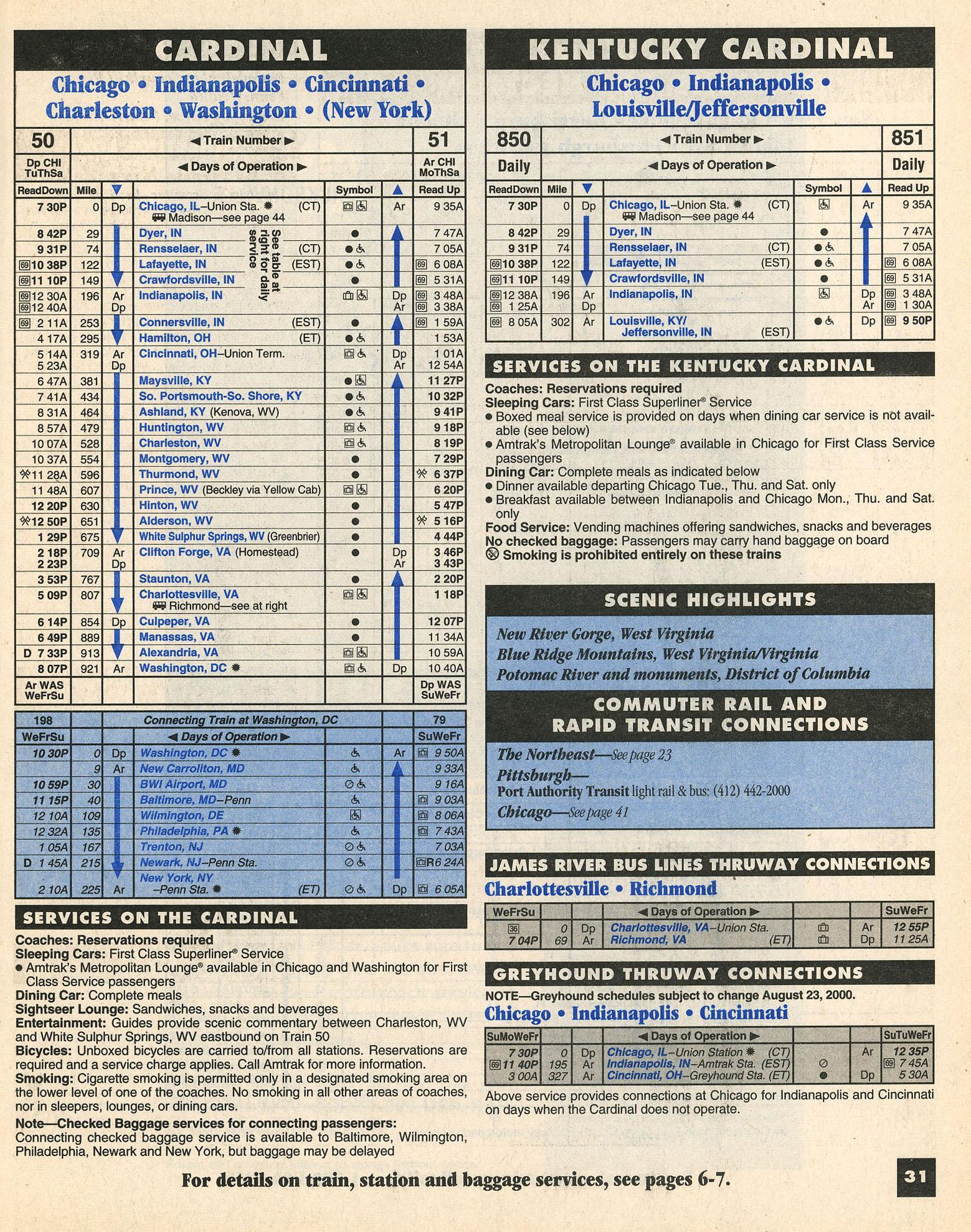 This timetable image is ©2000 National Railroad Passenger Corporation (Amtrak).