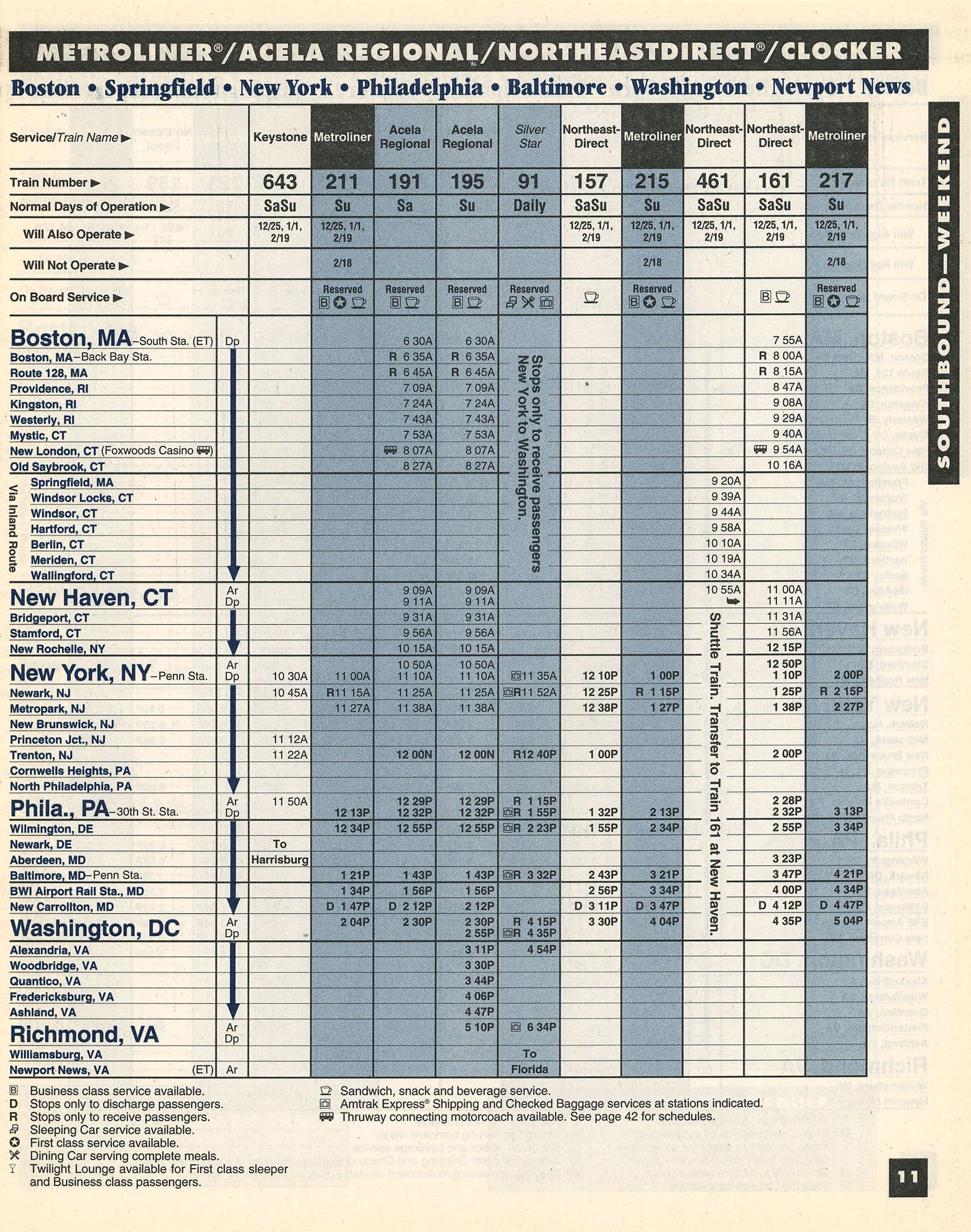 This timetable image is ©2000 National Railroad Passenger Corporation (Amtrak).