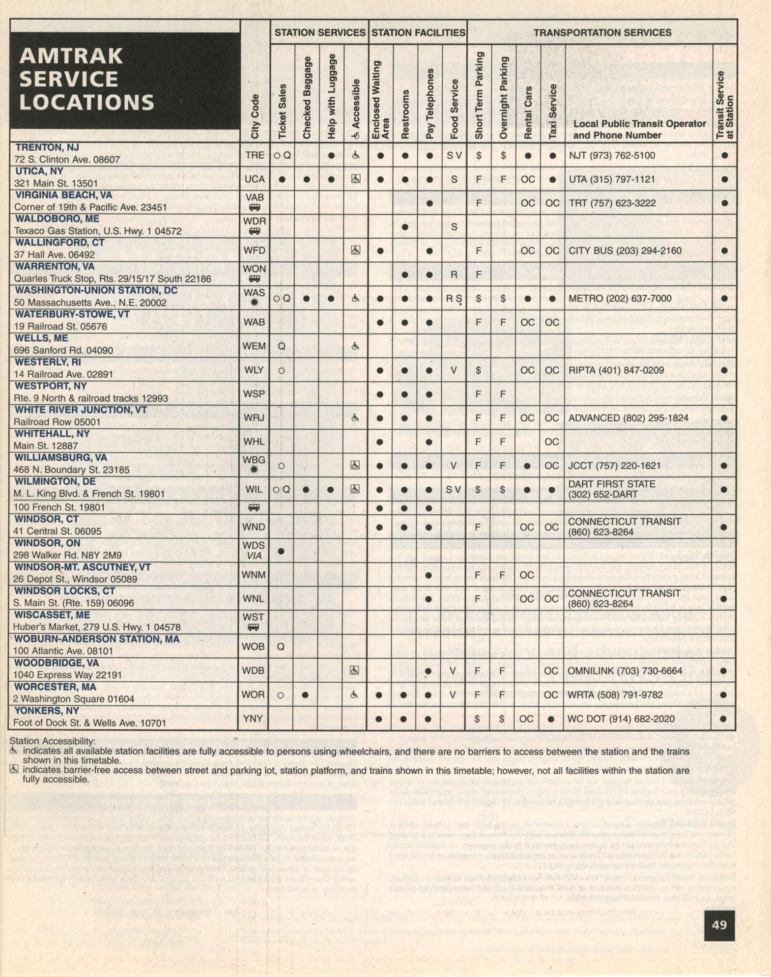 This timetable image is ©2003 National Railroad Passenger Corporation (Amtrak).