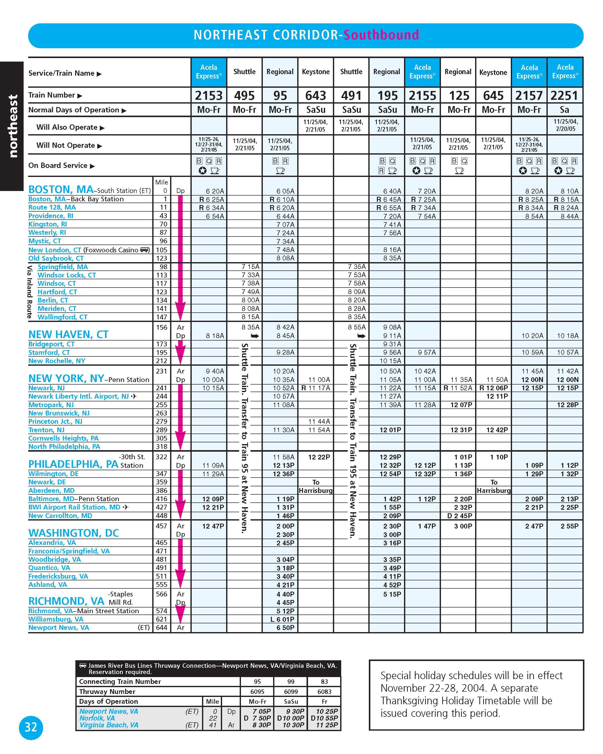 This timetable image is ©2004 National Railroad Passenger Corporation (Amtrak).
