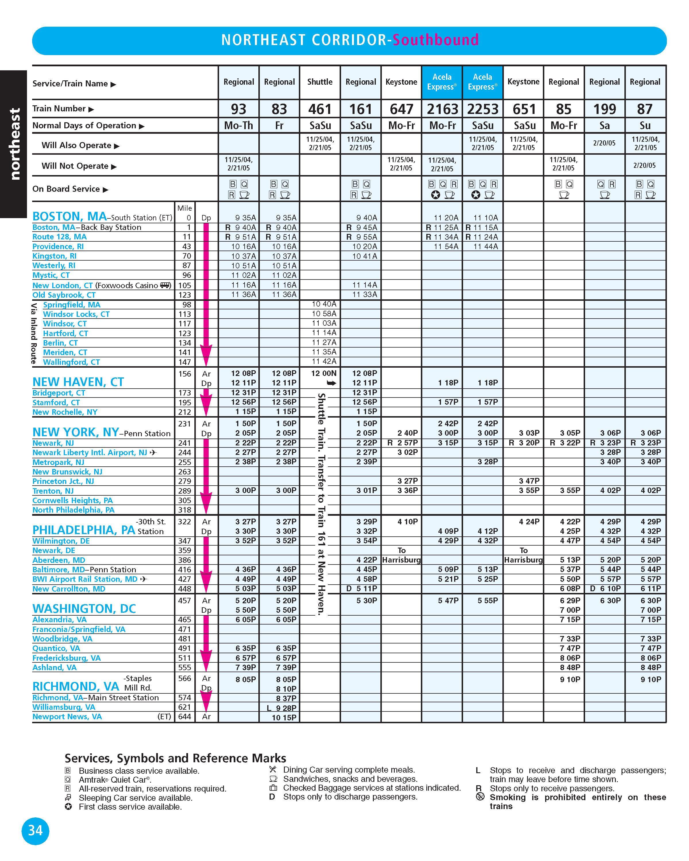 This timetable image is ©2004 National Railroad Passenger Corporation (Amtrak).