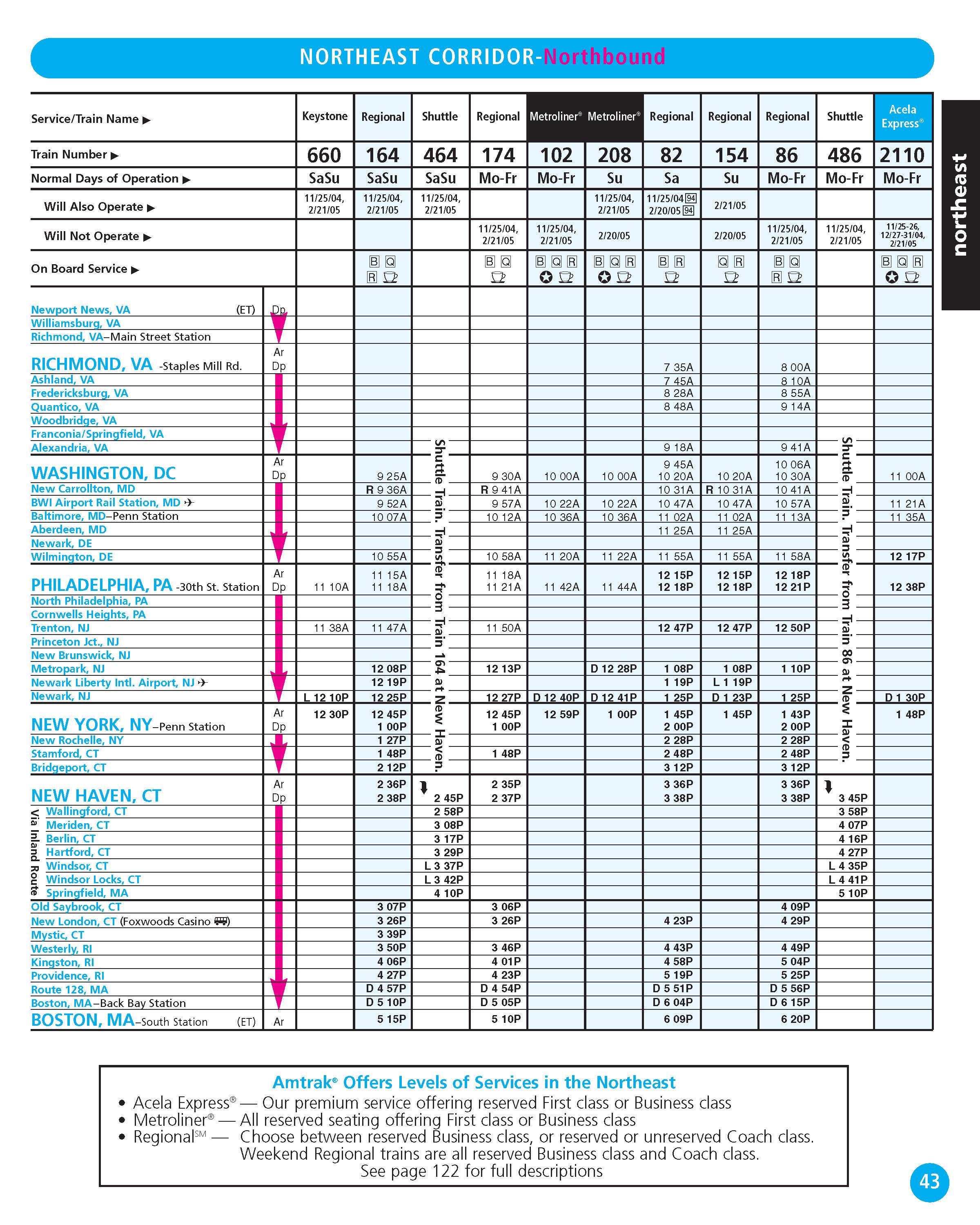 This timetable image is ©2004 National Railroad Passenger Corporation (Amtrak).