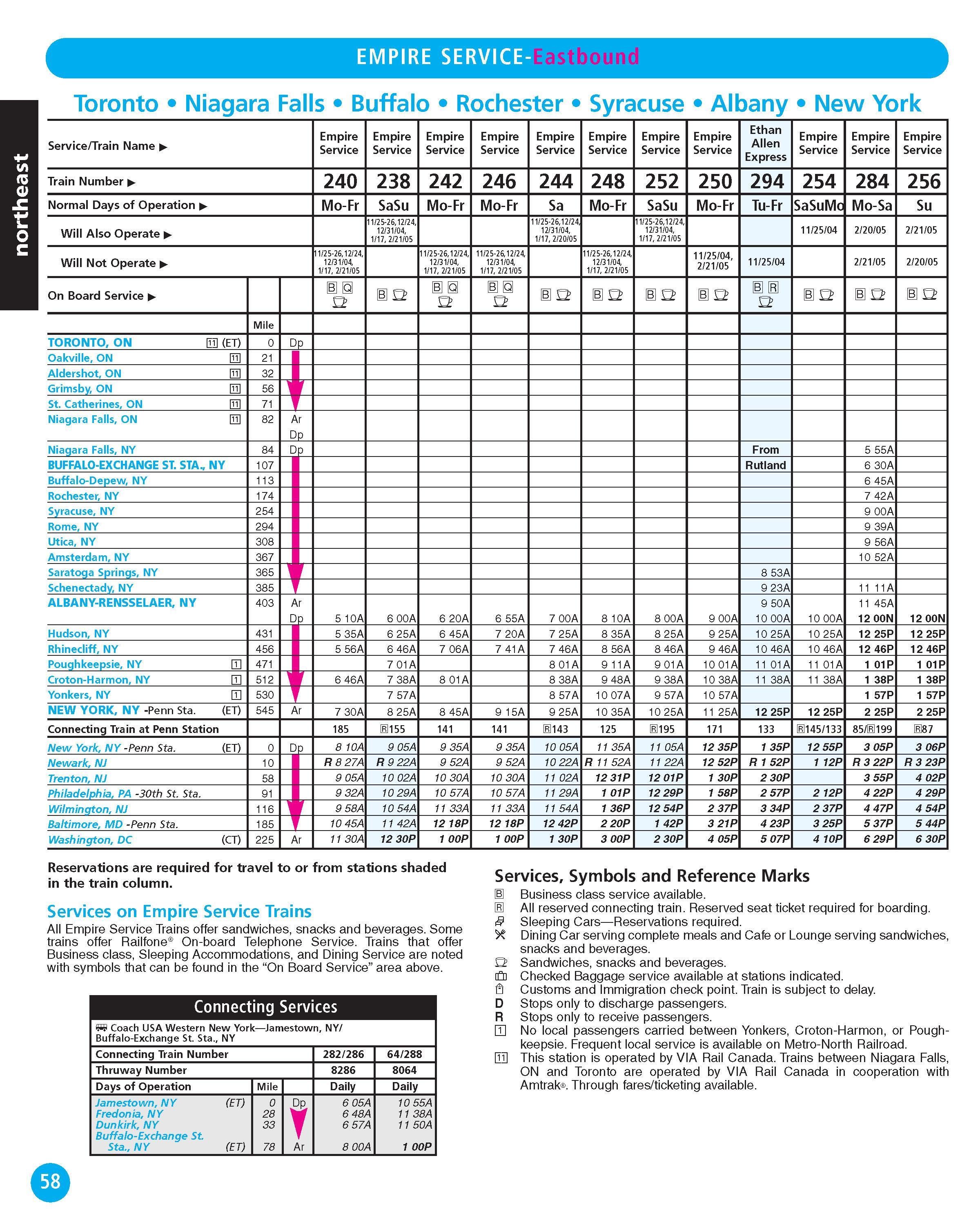 This timetable image is ©2004 National Railroad Passenger Corporation (Amtrak).