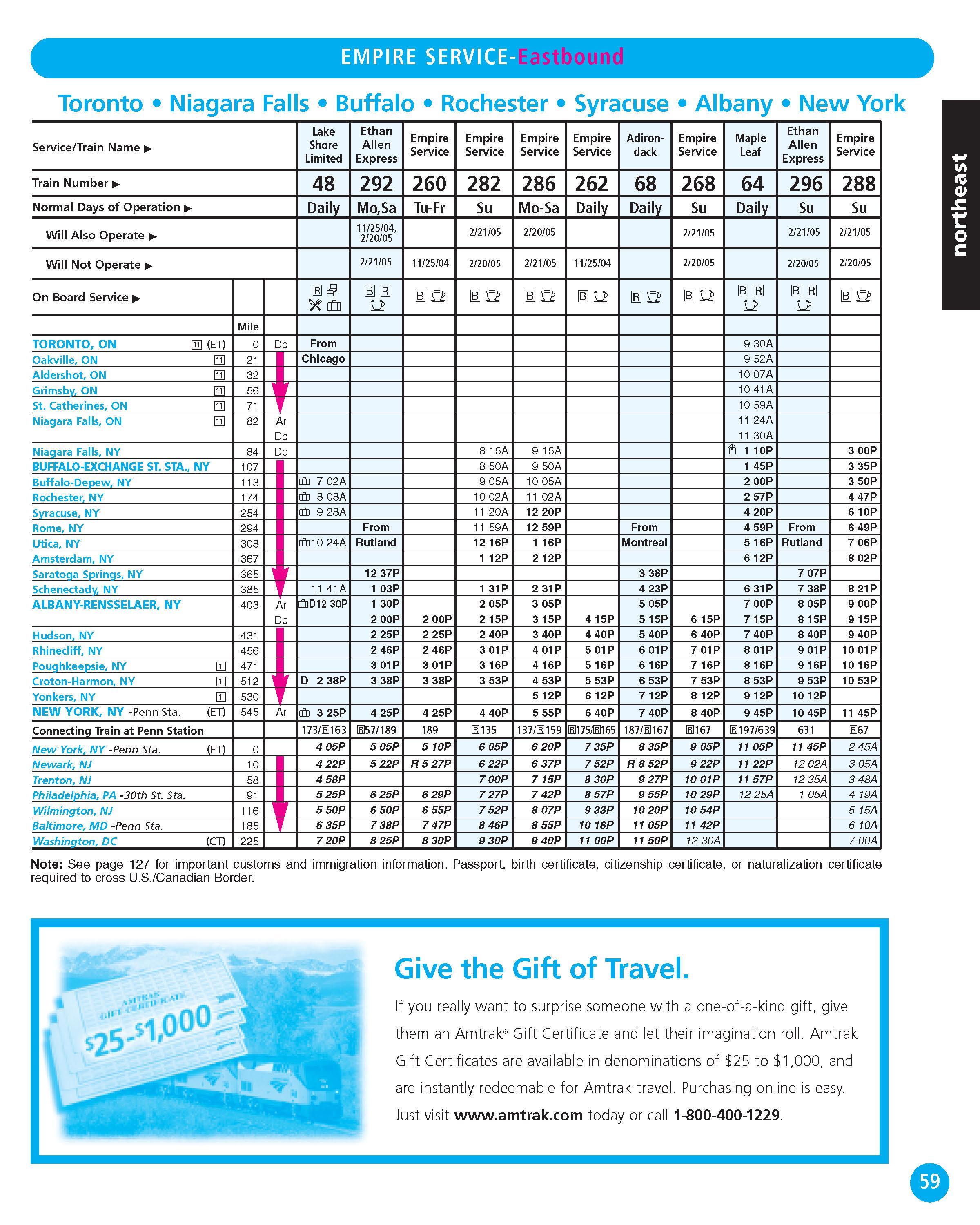 This timetable image is ©2004 National Railroad Passenger Corporation (Amtrak).