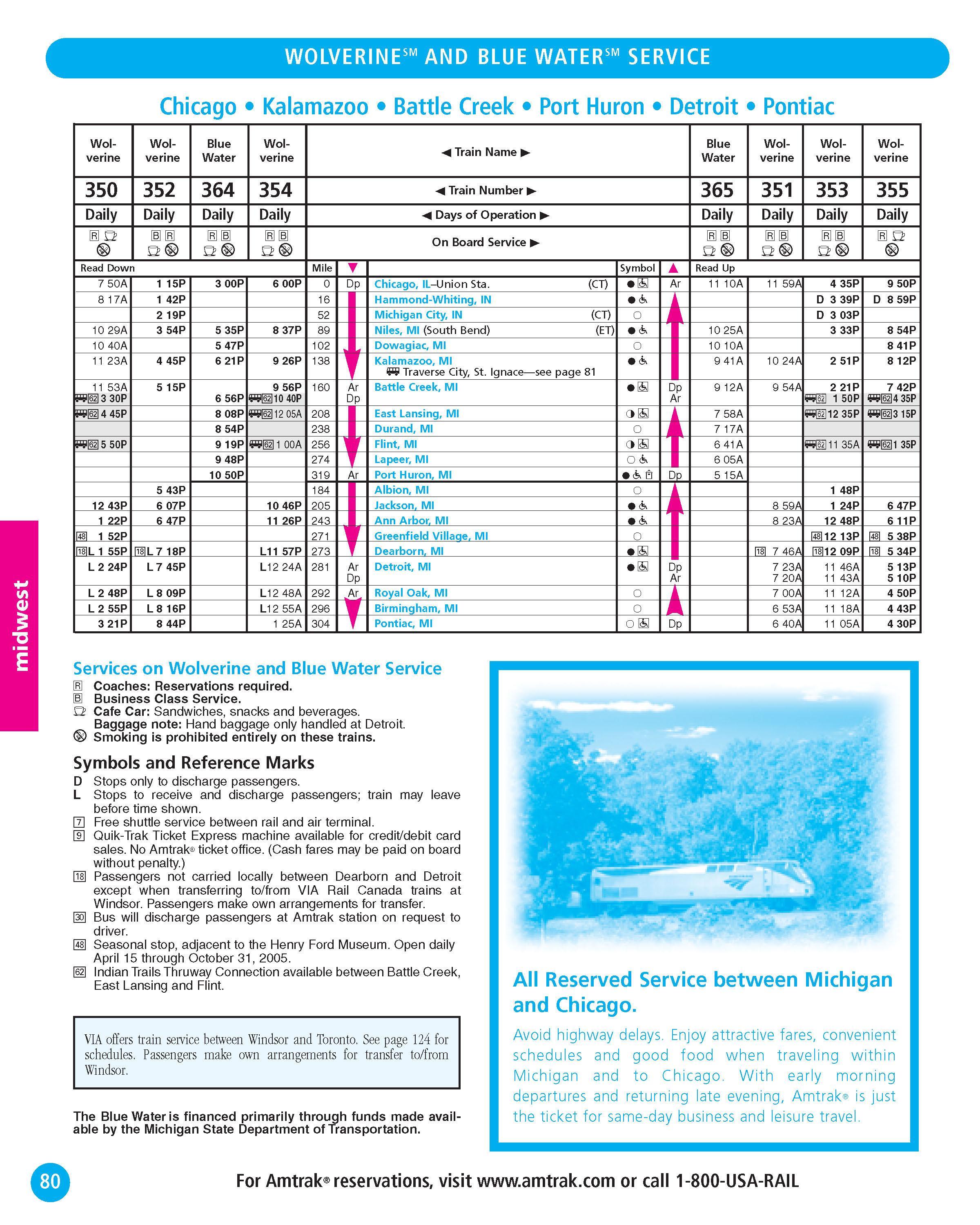 This timetable image is ©2005 National Railroad Passenger Corporation (Amtrak).