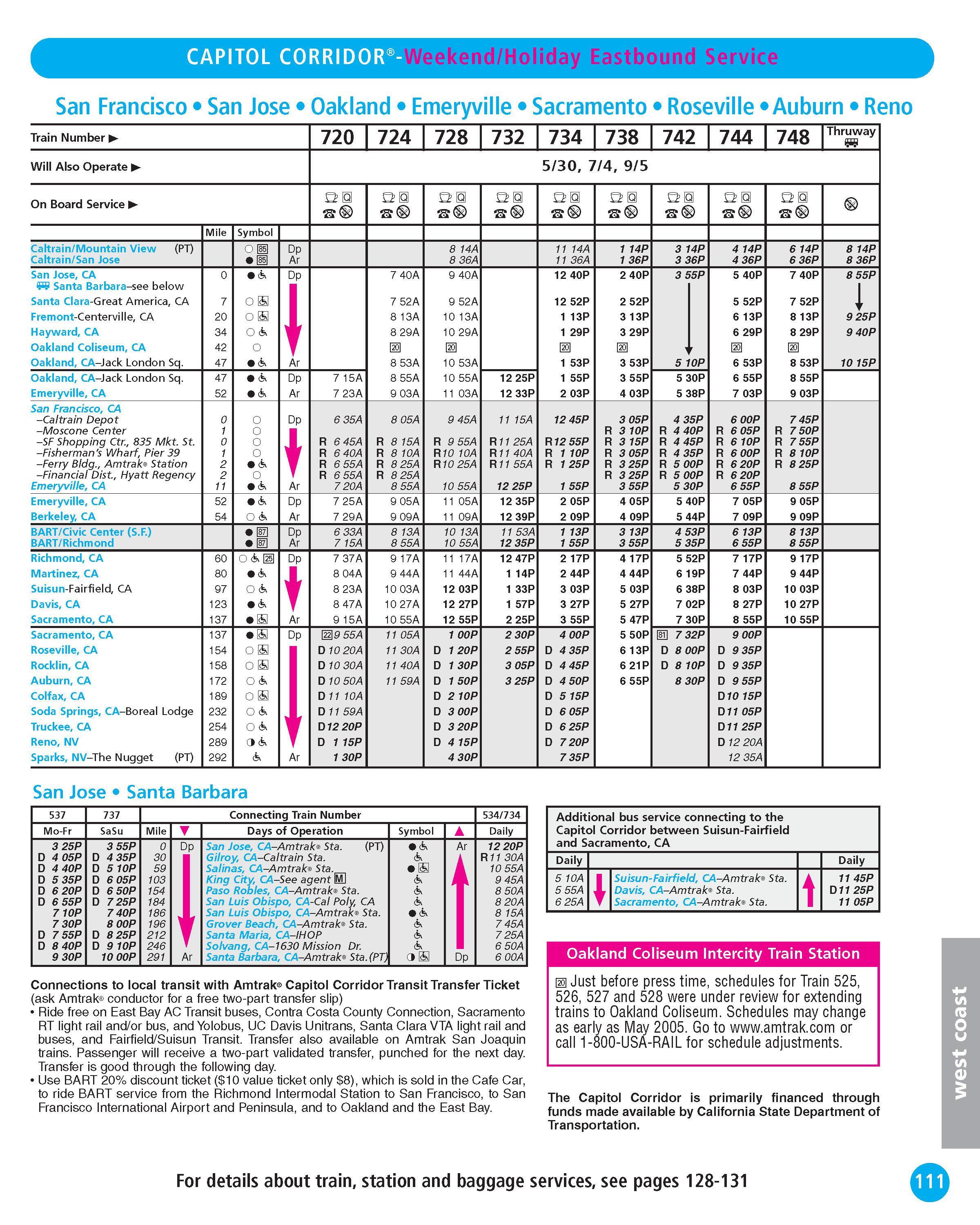 This timetable image is ©2005 National Railroad Passenger Corporation (Amtrak).