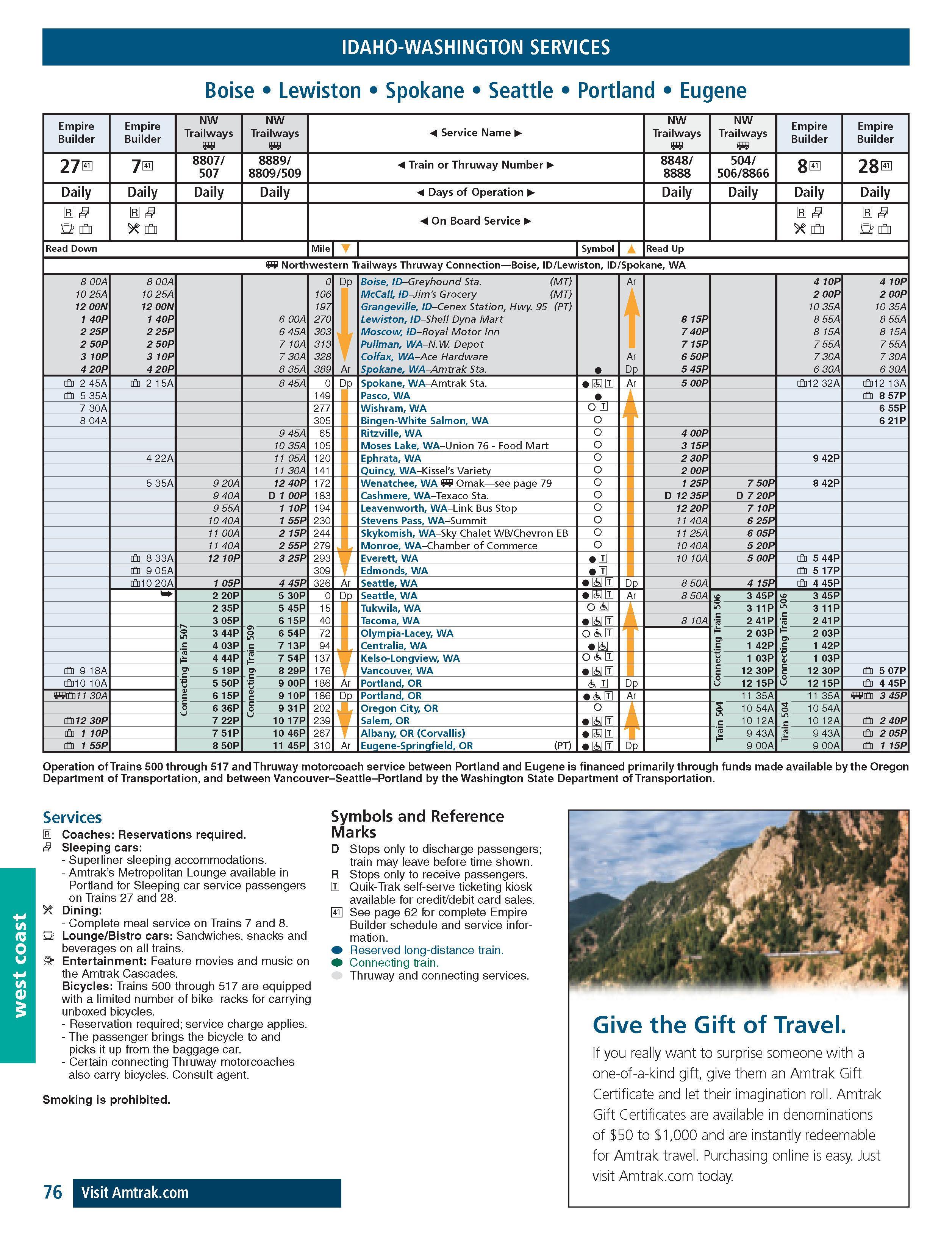 This timetable image is ©2009 National Railroad Passenger Corporation (Amtrak).